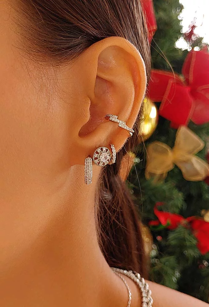 Brinco Argola Zircônia Cristal no Ródio